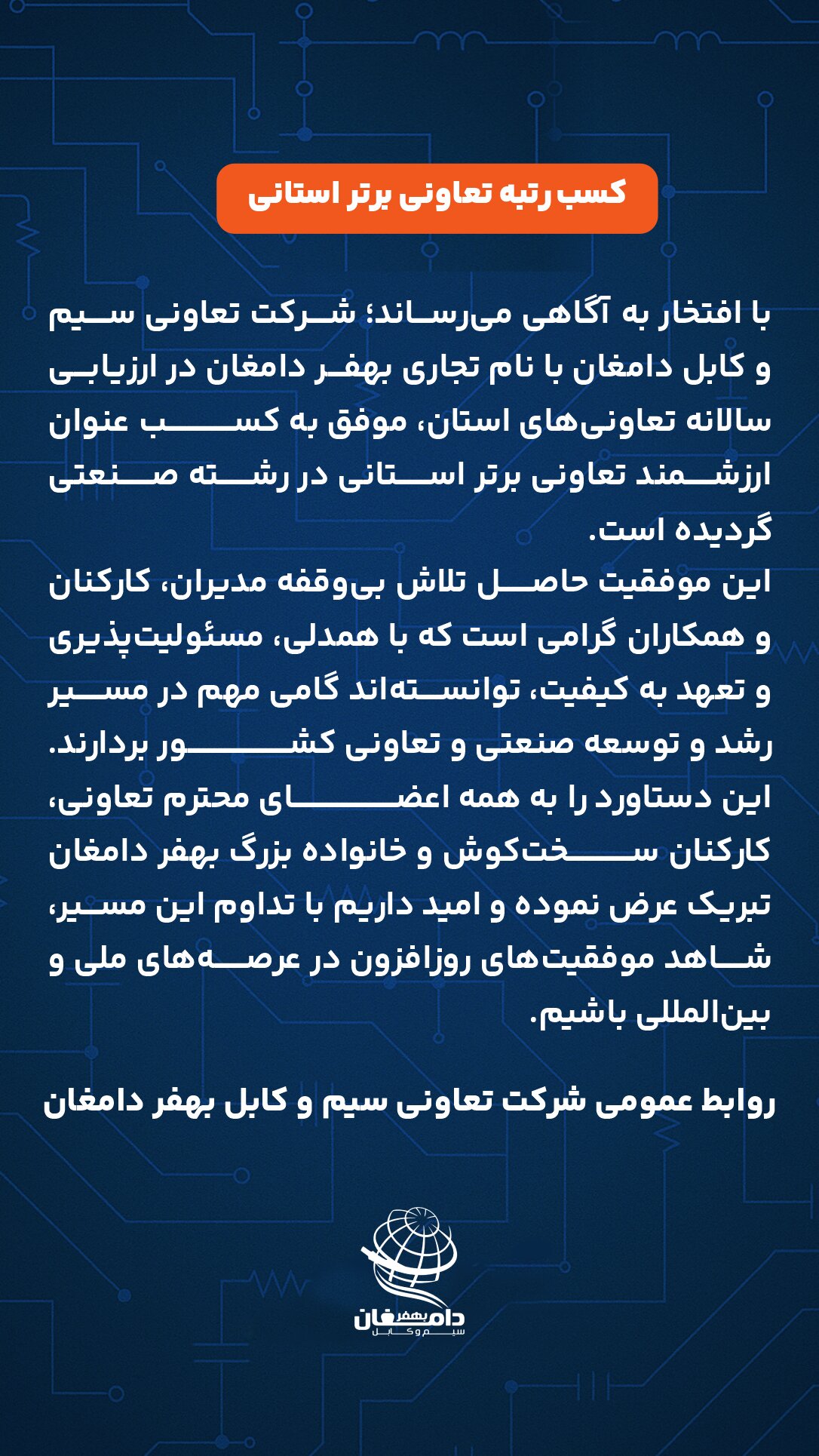 کارفرما: شرکت سیم و کابل بهفر دامغان